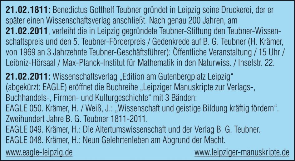 Gotthelf Teubner Leipzig / Dresden / Berlin / Stuttgart 2011.